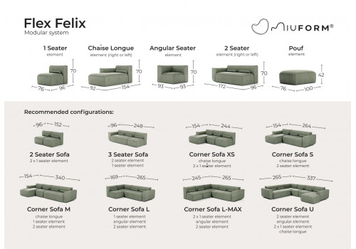 Whole collection boasts with modern design - low backrests, geometric shapes, deep and soft seats – all provide unrivaled comfort and encourage relaxation. Designed with flexibility in mind, Felix modules are connected with a system hidden under the seat.