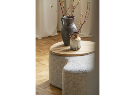 Made of durable but lightweight materials, it is easy to carry, and its multiplication allows you to create modular configurations in the space. With great success it will find its use in various arrangements fulfilling different functions, for example: from a footstool in the hallway, through a table in the living room, to a seat in the bedroom or dressing room.