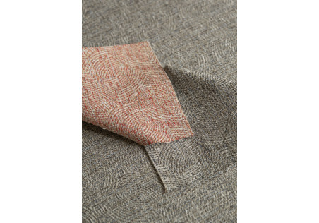 Our product, the Miuf pouf in a new look! It was created in a uniquely structured fabric that will delight those looking for subtle but striking patterns. It was created with threads in 5 colors, forming an elegant pattern of rings. To choose from, within the collection, there is a version maintained in tones of gray and in tones of red.