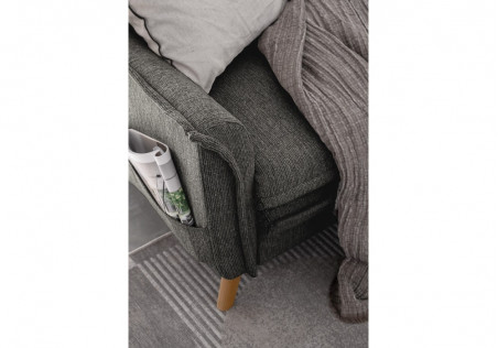 Slender, natural-colored wooden feet and thick, soft-to-touch fabric add special charm to the piece. Perfectly balanced armrests, double seat finished with an original trim, side pocket for accessories - all make the collection a truly outstanding one.