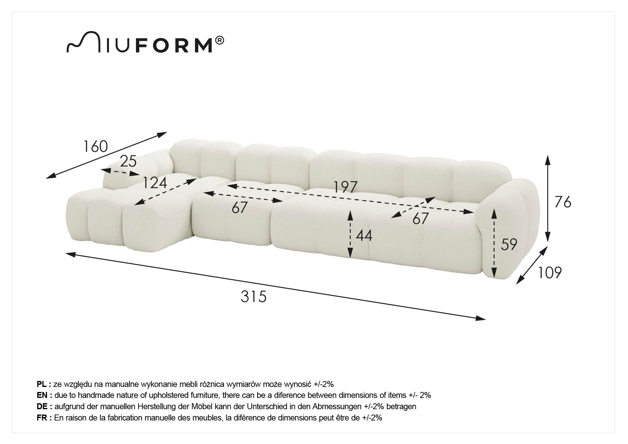 • minimalist, cloud-like look thanks to deep, vertical tufting of the sofas,